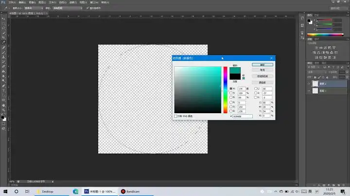 拉一个圆形在图层里(按下Shift拉可以保持图片比例),然后点击拾色器工具,选择颜色,这里以009688水鸭绿为例