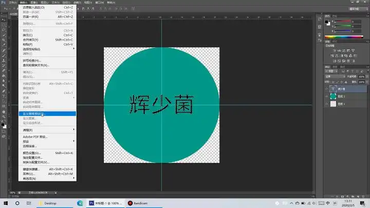 这时候我们按下Ctrl,点击文字图层的图标,这时候“辉少菌”的周围会出现“蚂蚁线”,这时候我们点击左上角“编辑”点击“自定义画笔预设”