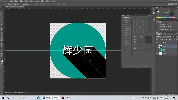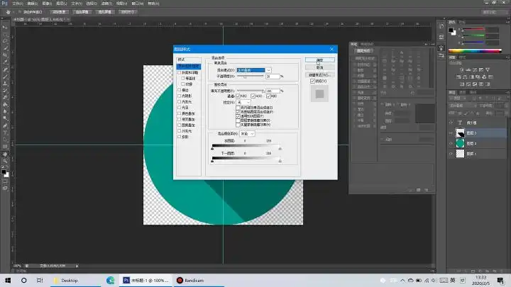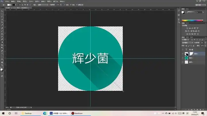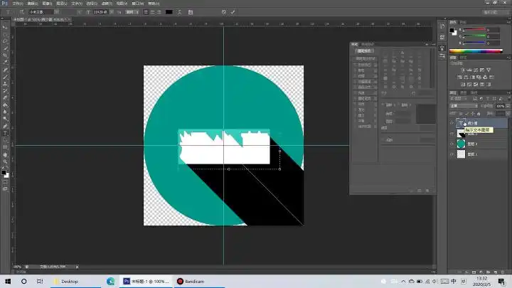有没有发现阴影在透明的地方也有,这会影响美观,我们现在就用蒙版来把阴影“关”在圆里,我们首先按下Ctrl点击圆形图层的图标,让圆形周围出现“蚂蚁线”,然后点击阴影图层,再点击图层管理下方的蒙版图标。