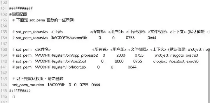 就是原来的config.sh文件,权限配置和刷入模块时显示的信息被改到 /META-INF/com/google/android/update-binary 文件内