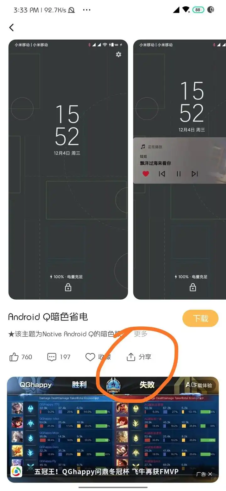 如果下载主题商店的壁纸,需要一个工具( 查看链接 ,这里依然是大家喜欢的lanzous),进入主题壁纸,找到自己需要下载的主题,点击分享