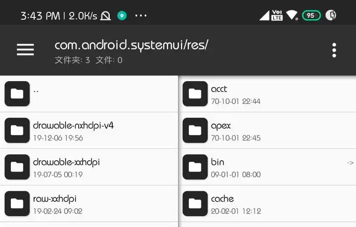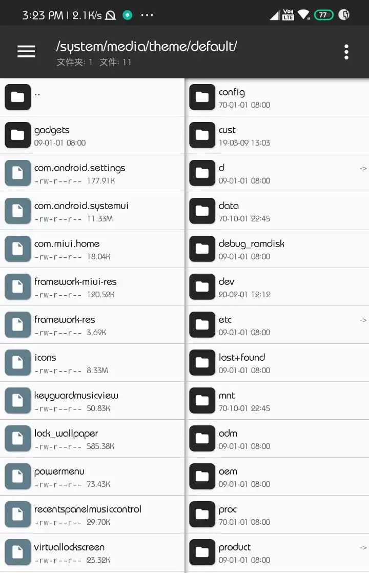 我们首先打开/system/media/theme/default/文件夹,再期中我们可以发展没有后缀名的文件,这几个文件实质上一一个zip压缩包,以zip方式打开即可
