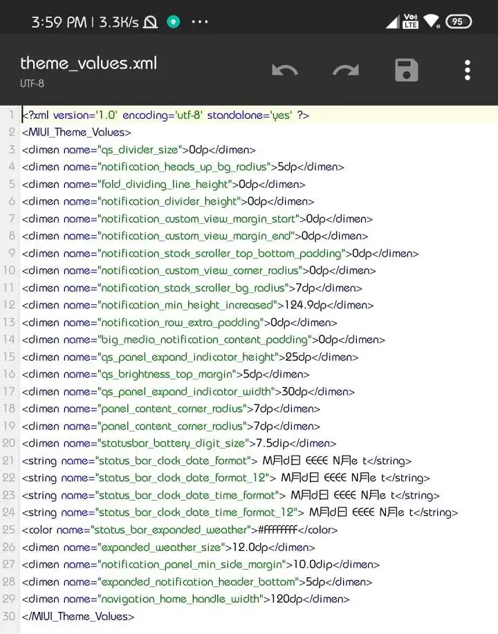 这个是修改属性数值和文字内容的文件,里面的代码都是对应dex资源的,自己可以在apk的dex用 【MT管理器2】 的Dex编辑器里找资源,或者可以在酷安搜索关键词“miui主题代码”进行查找