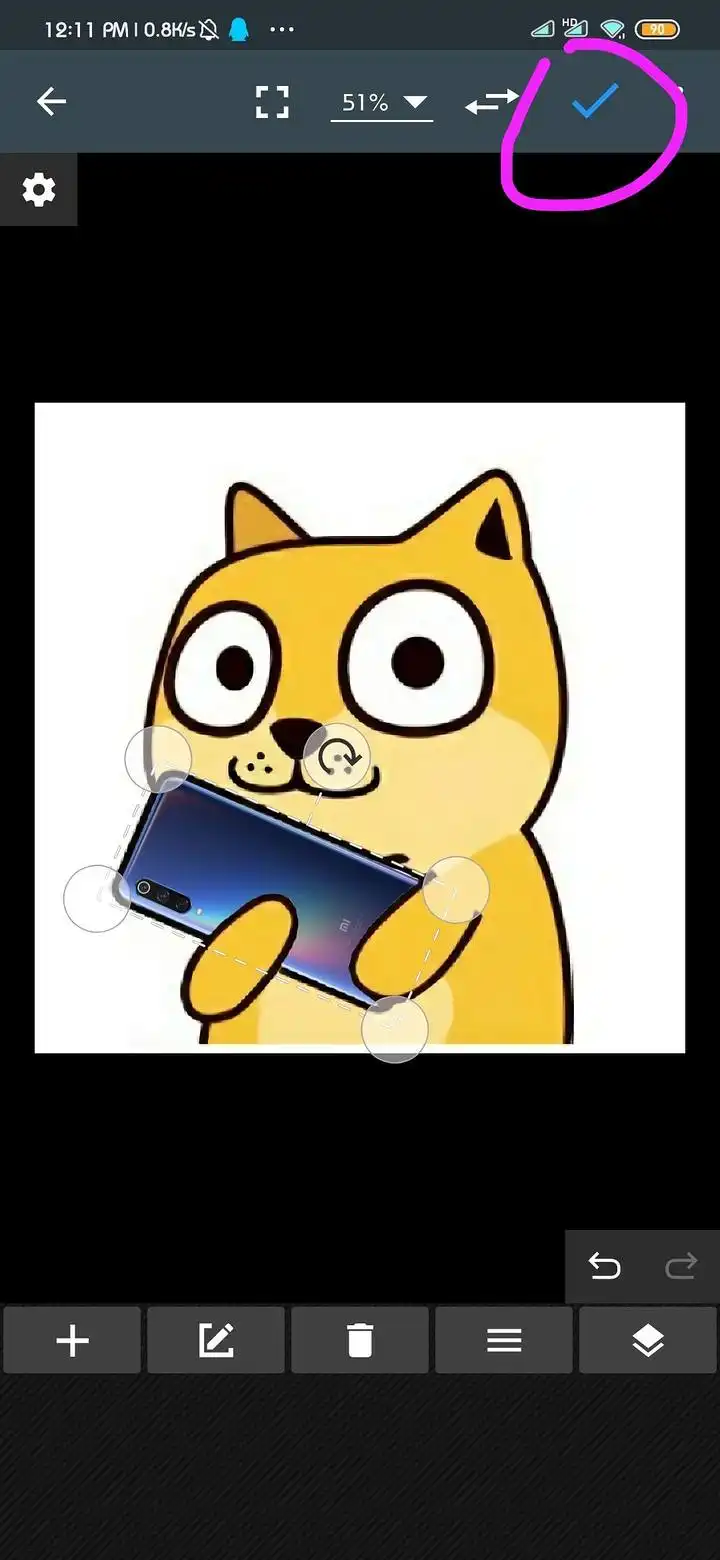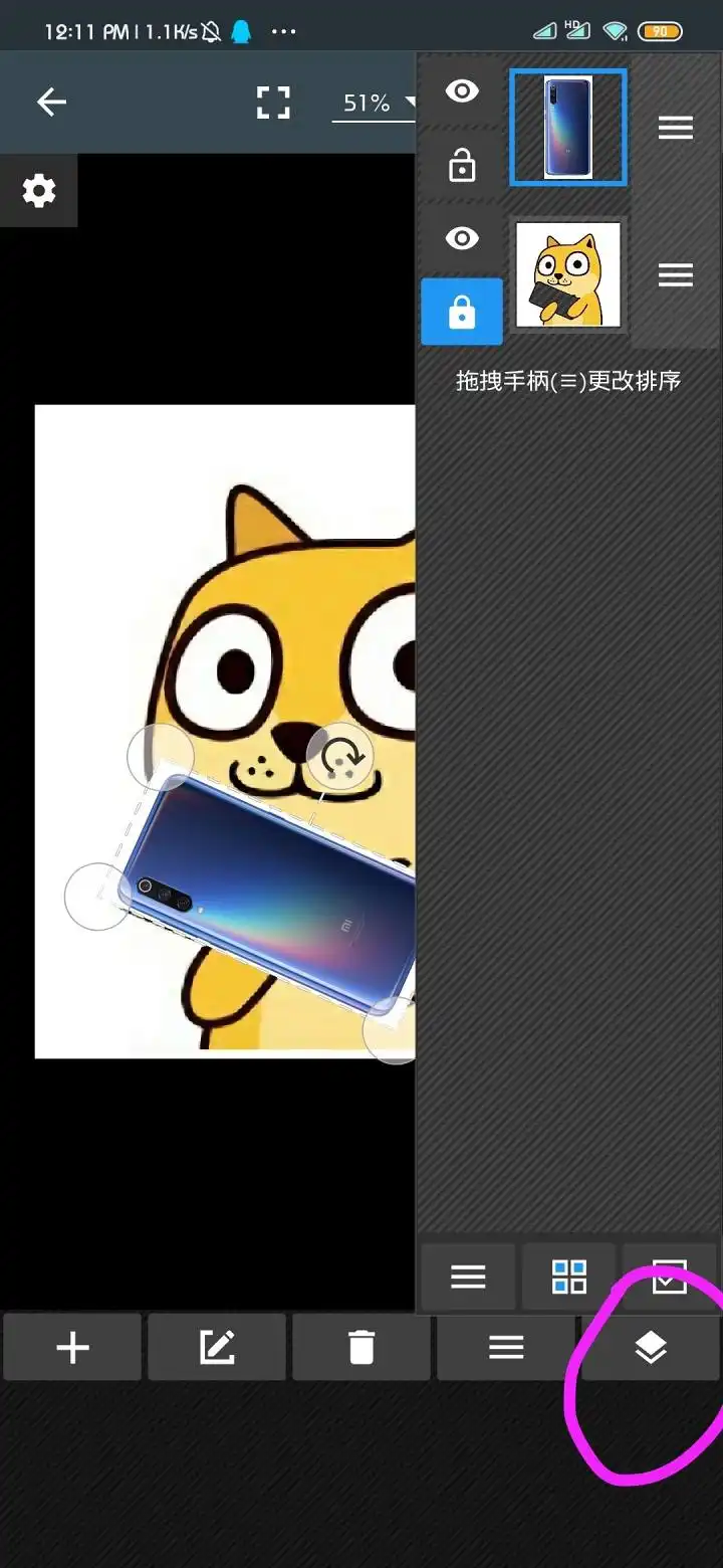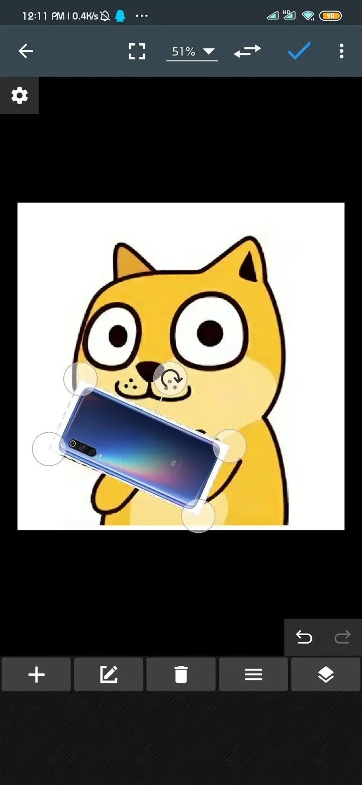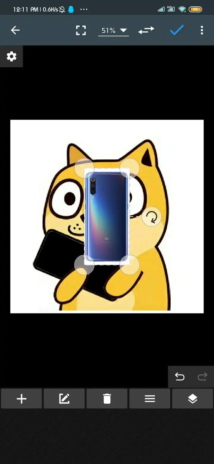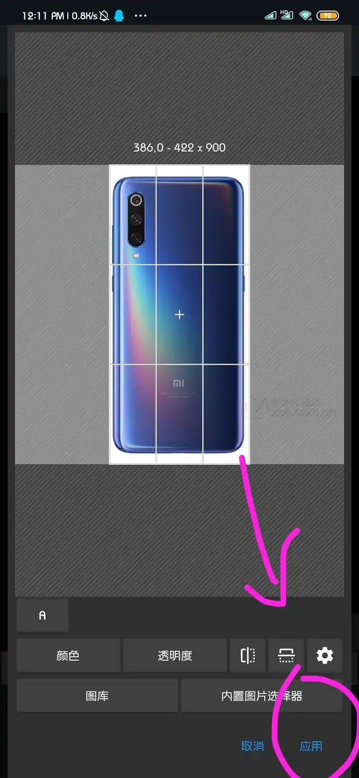 对手机背面图片进行旋转和缩放,让他正好与黑边相贴,这样就成功了。