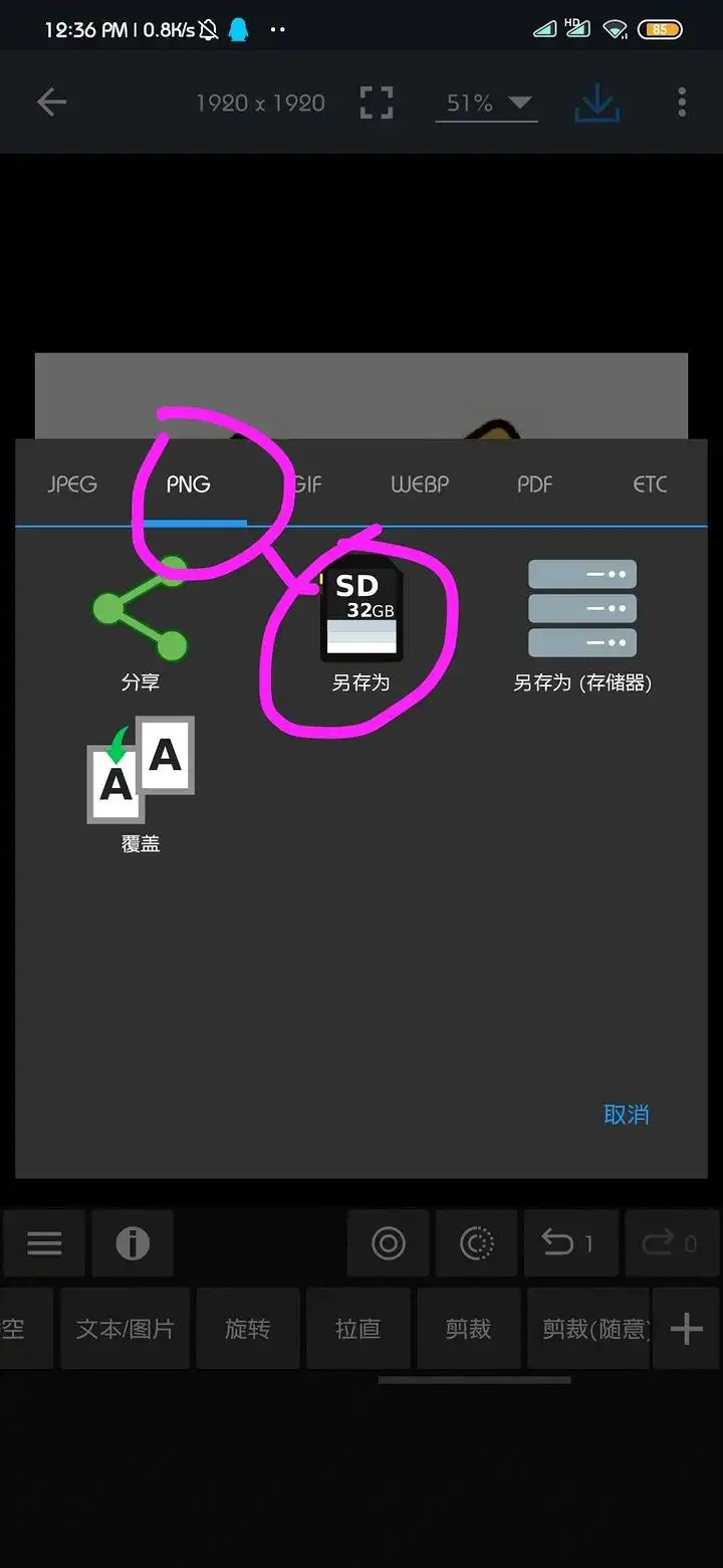 点击上面的【PNG】按钮然后点【另存为】按钮